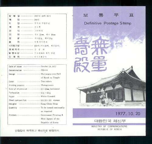 *1977/º¸Åë¿ìÇ¥ 200¿ø(¹«·®¼öÀü) ¾È³»Ä«µå.