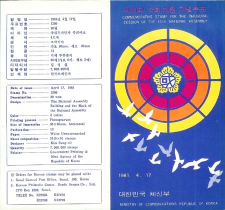 *1981/Á¦11´ë ±¹È¸°³¿ø ¾È³»Ä«µå.