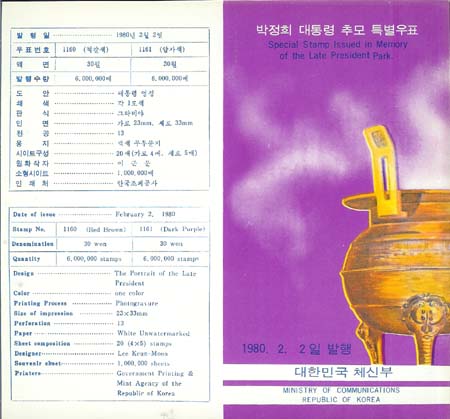1980/ ¹ÚÁ¤Èñ´ëÅë·É Ã߸ð ¾È³»Àå / Á¢Èû