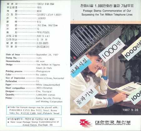1987/ ÀüÈ­½Ã¼³ 1000¸¸È¸¼± µ¹ÆÄ ¾È³»Ä«µå