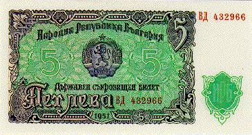 1951BULGARIA(ºÒ°¡¸®¾Æ) 5 LevaBULGARIA(ºÒ°¡¸®¾Æ) 5 Leva