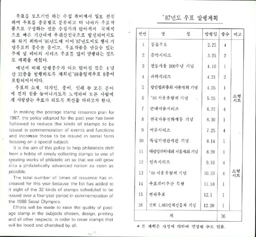 1987/ 1987³â ¿ìÇ¥¹ßÇà°èȹǥ ¾È³»Ä«µå(Á¢Èû)