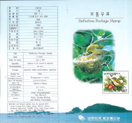 1997/ º¸Åë¿ìÇ¥ µ¿¹Ú»õ (80¿ø±Ç) ¾È³»Àå
