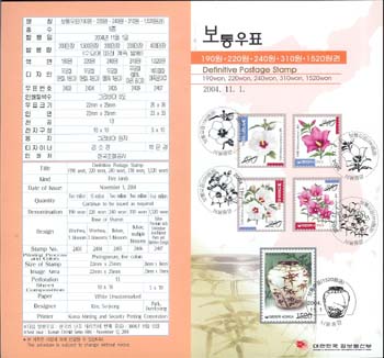 2004/ º¸Åë¿ìÇ¥ ¹«±ÃÈ­ µî 5Á¾ (190¿ø, 220¿ø, 240¿ø, 310¿ø, 1520¿ø±Ç) ¾È³»Àå